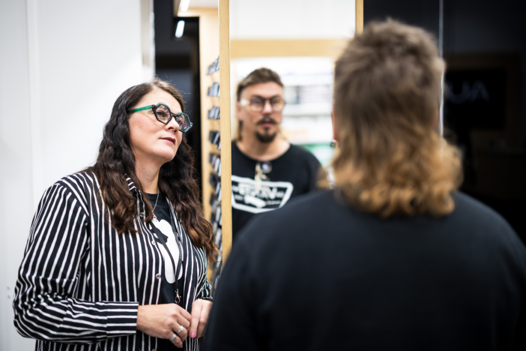 — Hyvin istuvat kehykset, laadukkaat pinnoitteet ja oikein mitoitetut linssit vähentävät silmien kuormitusta. Tämän päivän linssiteknologia on erittäin kehittynyttä. Oikealla linssivalinnalla pystymme huomioimaan asiakkaan näkemisen tarpeet niin työssä, vapaa-ajalla kuin autoillessakin, myyjä Anna-Leena Rauhala sanoo.