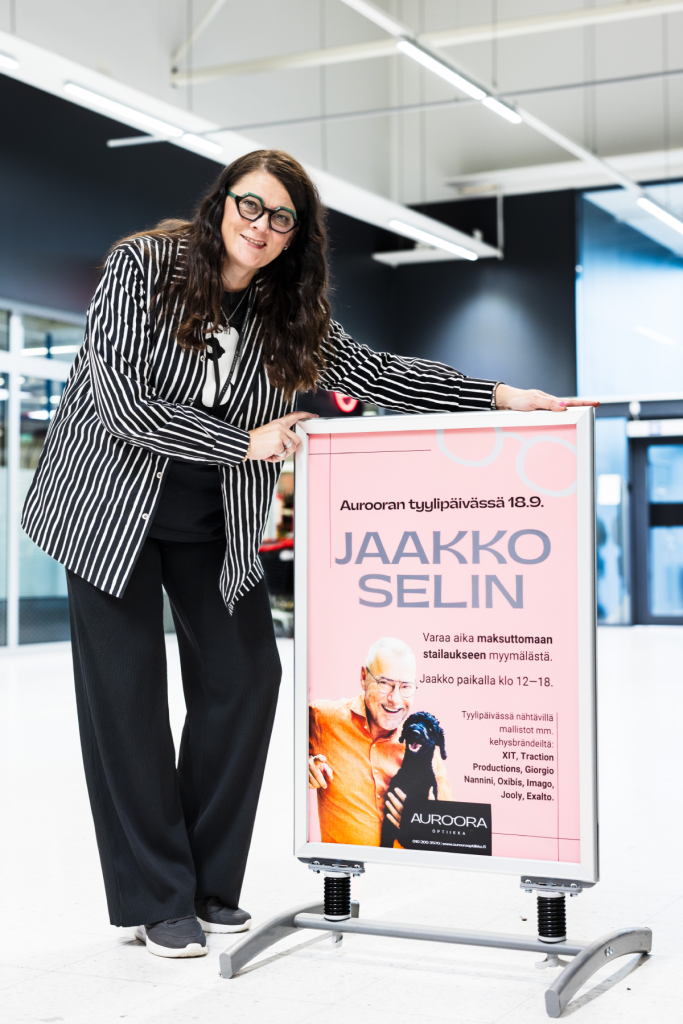 — Haluamme erottua yksilöllisellä palvelulla ja kehysvalikoimalla. Ostamme kehykset itse, jotta mallisto palvelee erilaisia kuluttajia ja pystymme reagoimaan asiakkaittemme kehystoiveisiin, Rauhala kertoo.