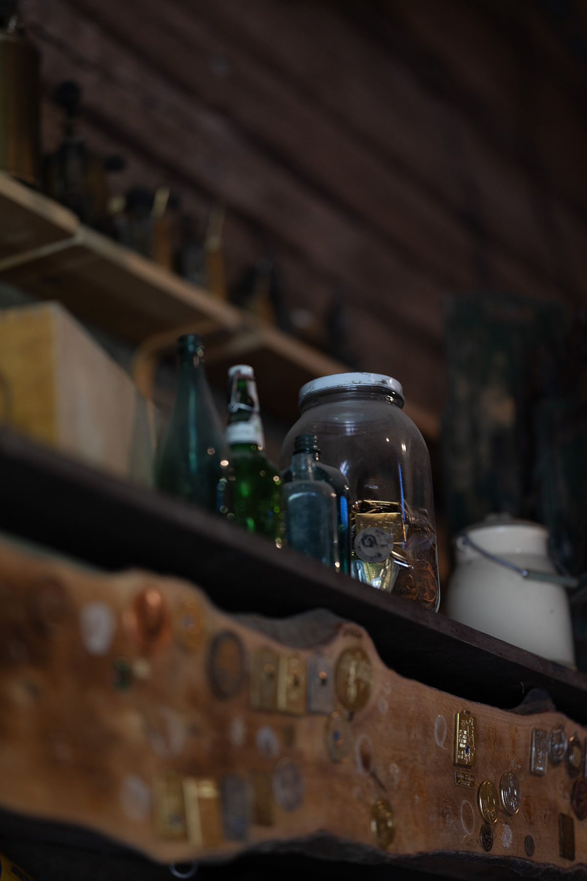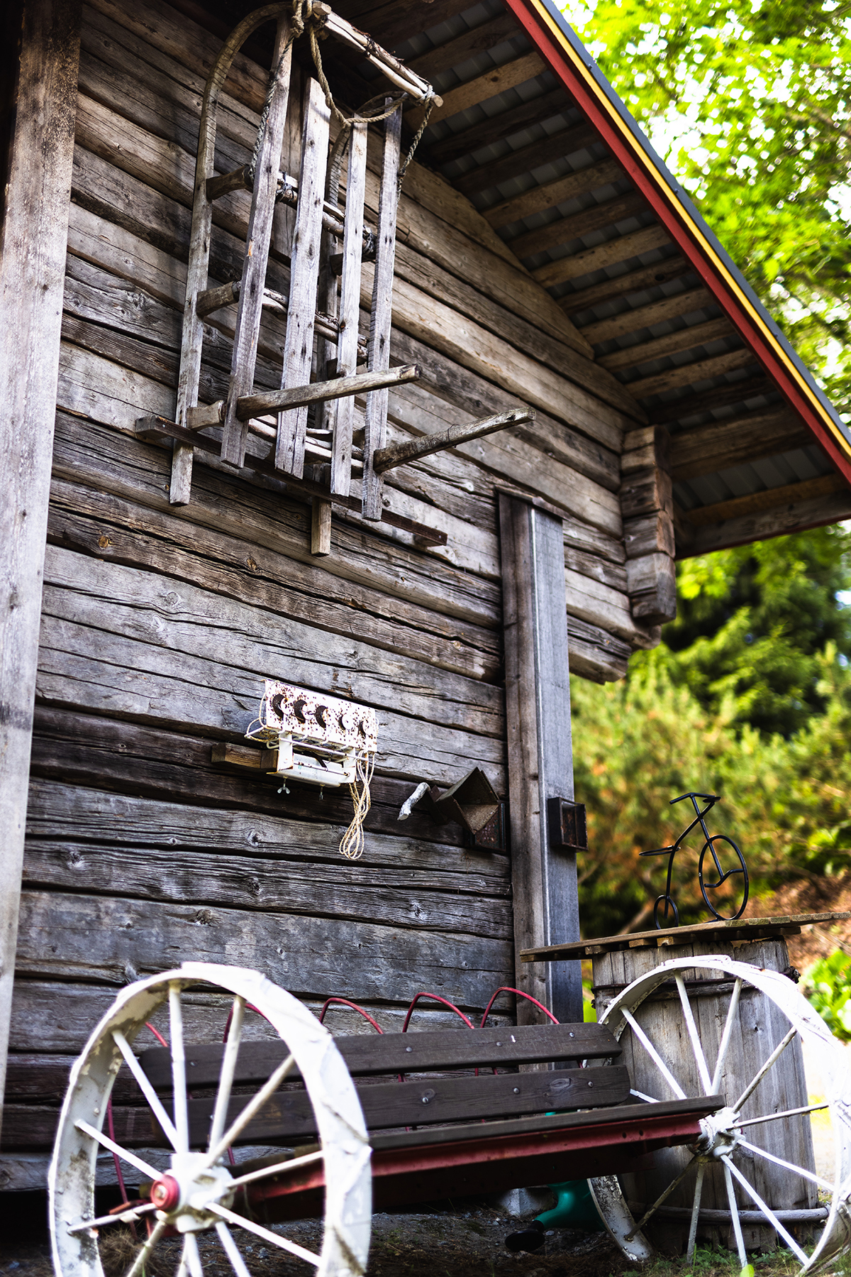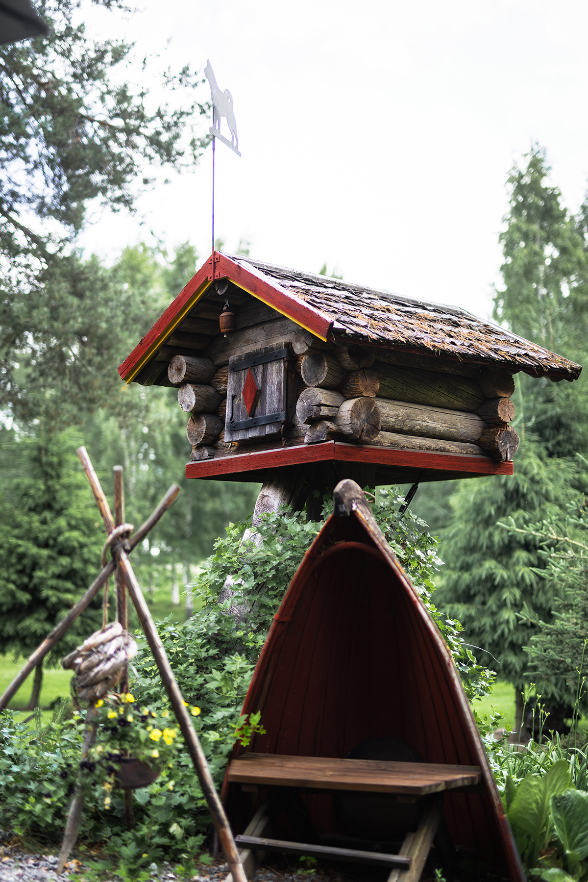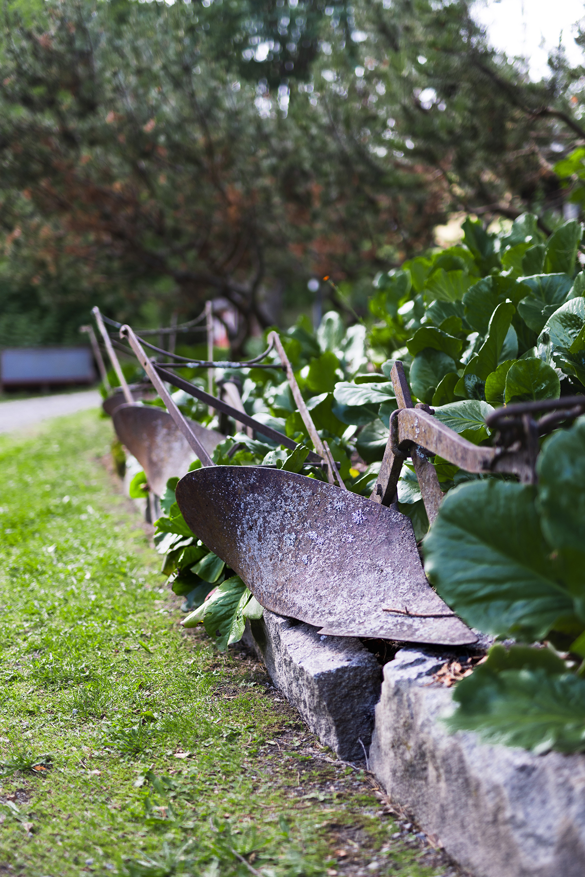 Pihassa on jälkiä elämästä: kivipolkuja, jotka johtavat terassilta kasvihuoneelle, vanhoja istuimia varjossa ja koriste-esineitä, jotka ovat löytäneet paikkansa ajan kanssa. Talo ja piha ovat kulkeneet elämänkaarta perheen mukana.