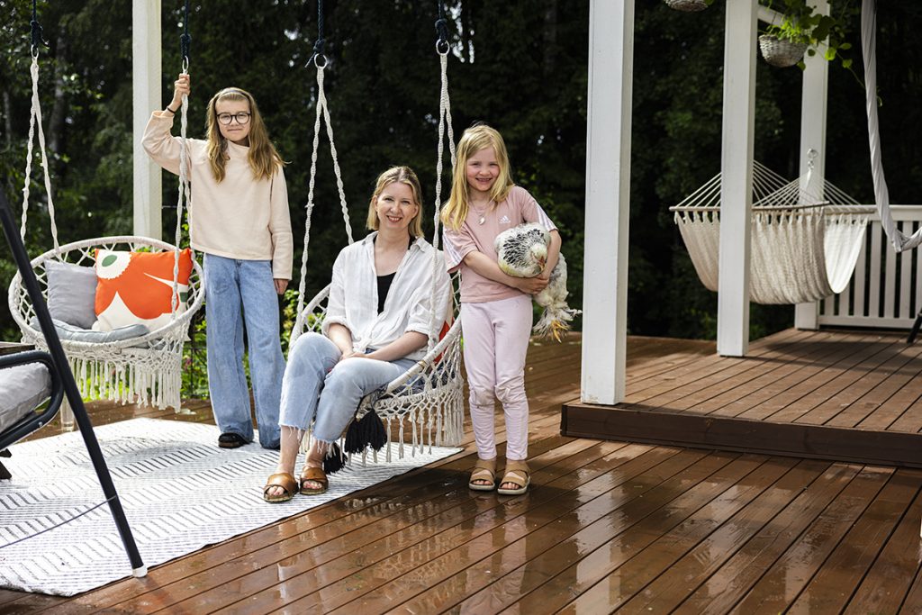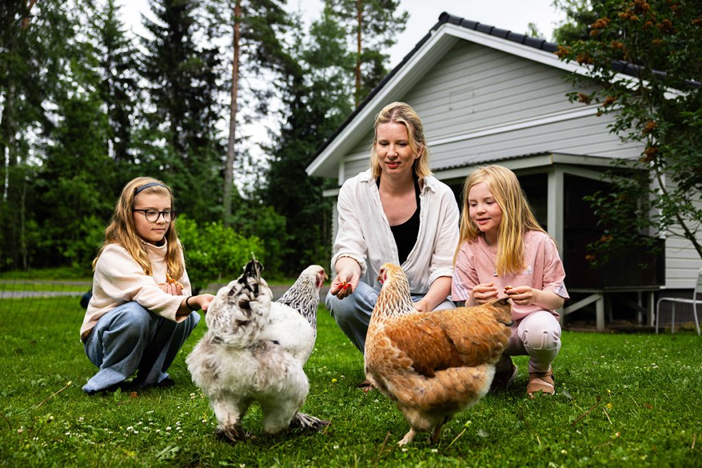 – Parina kesänä olemme teettäneet tipuja. Sitä jännitystä on ollut lasten kanssa myös kiva seurata, Anni kertoo kanojen tuomasta ilosta.